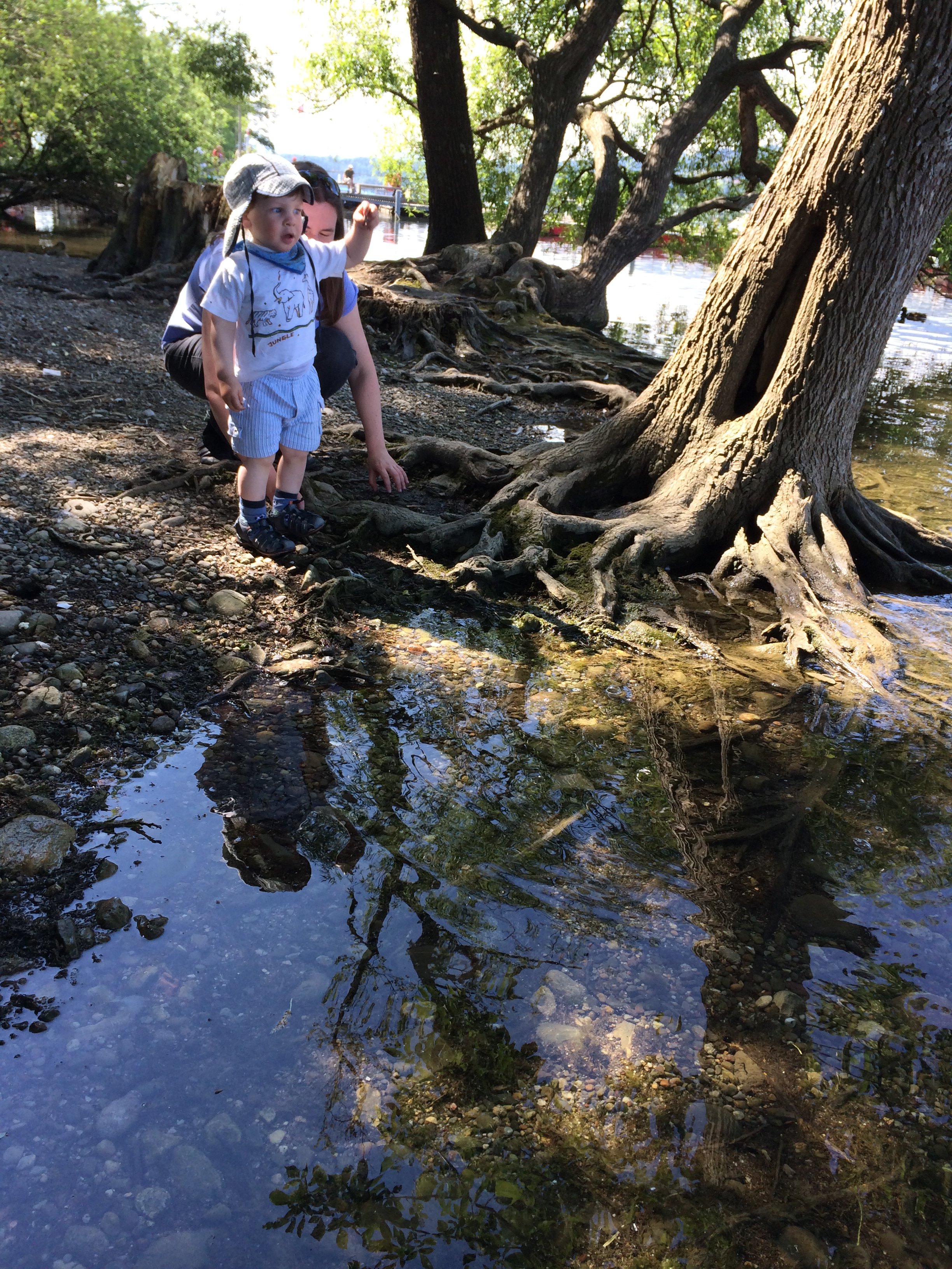 Heute bin ich mit Mama und der Johanna am Greifensee. Da es die letzten Tage ganz schön geregnet hat, ist noch alles überschwemmt.