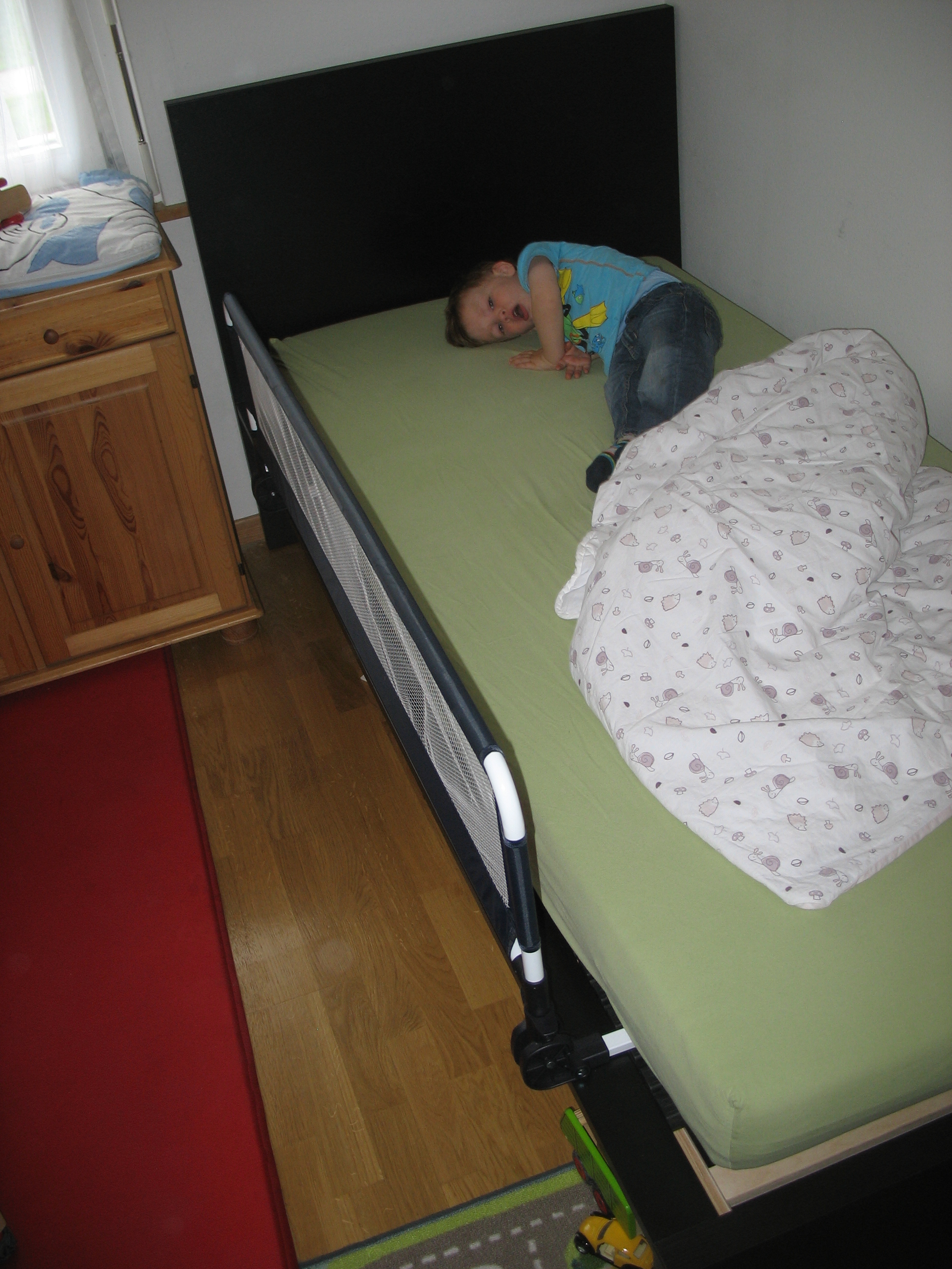 Sieht mal mein neues Bett! Das ist gross!