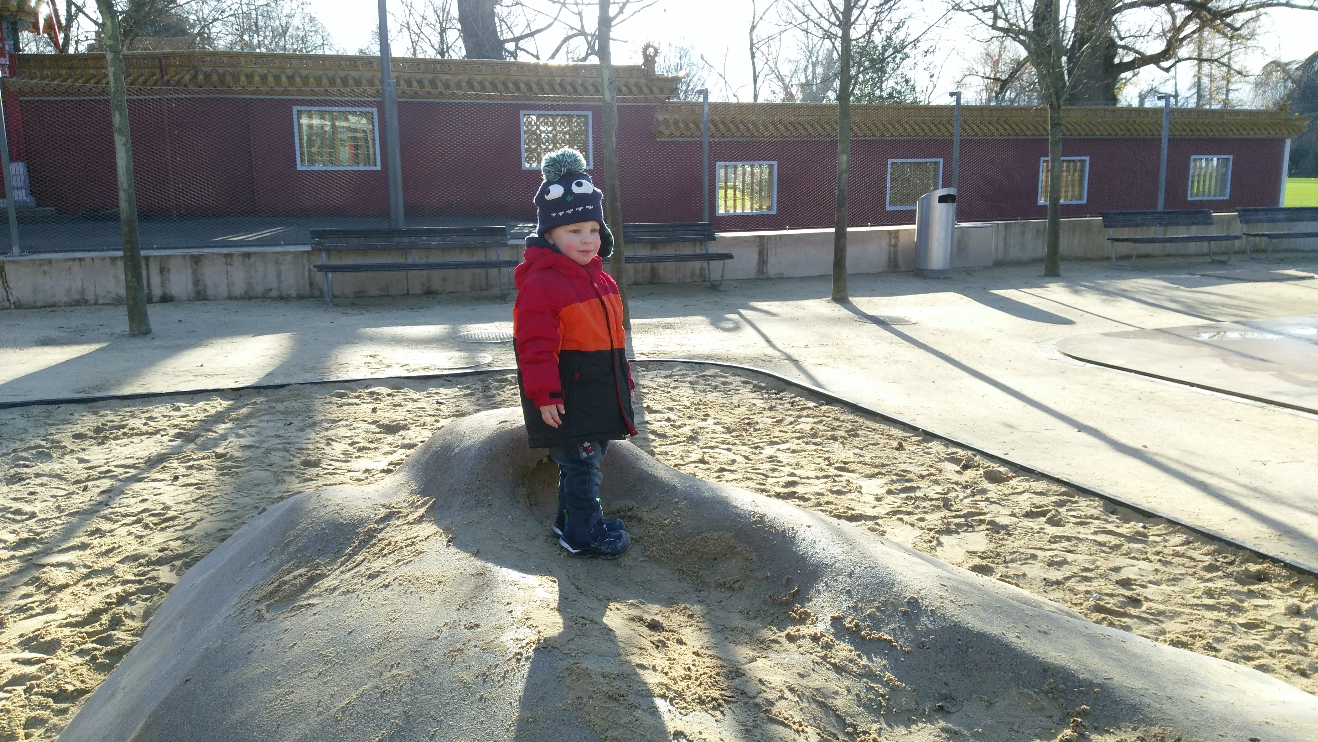 Hier kann man Klettern und im Sand graben.