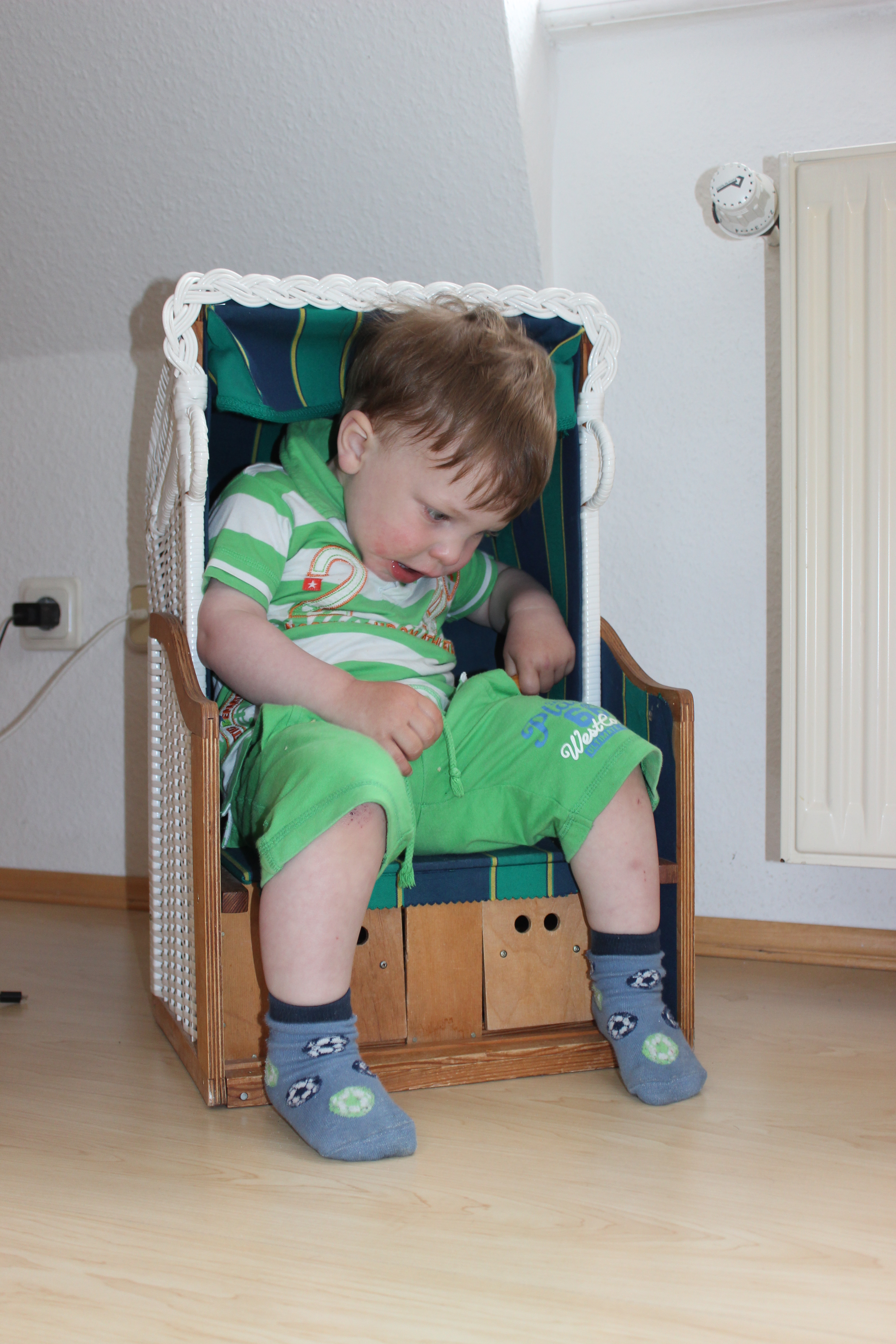 Jetzt nehme ich endlich mal meinen Strandkorb in Besitz. Ganz schön eng hier. Aber wie sagt man so schön? Trautes Heim mir allein - oder so.